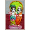 Krishna wordt vaak uitgebeeld in Zijn jongere jaren met Zijn magische fluit (als de toegankelijke, zoete Vraja Krishna van Vrindavan zoals in de Srimad Bhagavatam), maar ook wel als de taaie koning (minder toegankelijke) Parthasarathi Krishna op het slagveld in een strijdwagen aan de zijde van Arjuna (zoals in de Mahabharata). In de Srimad Bhagavatam wordt hij geassocieerd met Radha. Afmeting in hoogte 15 cm