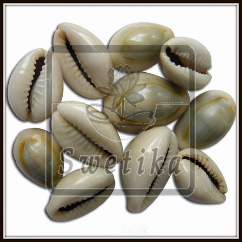 Vrouwelijke vorm van de schelp, "Kauri" in een setje van 11 stuks. Het houden van Kauri, breng geluk, rijkdom, voorspoed. "Kauri" werd verkregen uit "Samudra Manthan" samen met "Lakshmi" en andere zeldzame goddelijk en heilig producten. Een zeer oude tijd "Kauri" gebruikt als valuta en daarna werd in de ornamenten en ook gebruikt als sleutel van gokken. Per Hindu Shastras, "Kauri" wordt gezegd dat het de liefdevolle product van "Maha Lakshmi" te zijn. Het is ook gerelateerd aan Lord Shiva, omdat de haren van Shiva zijn gelijkaardig aan "Kauri".